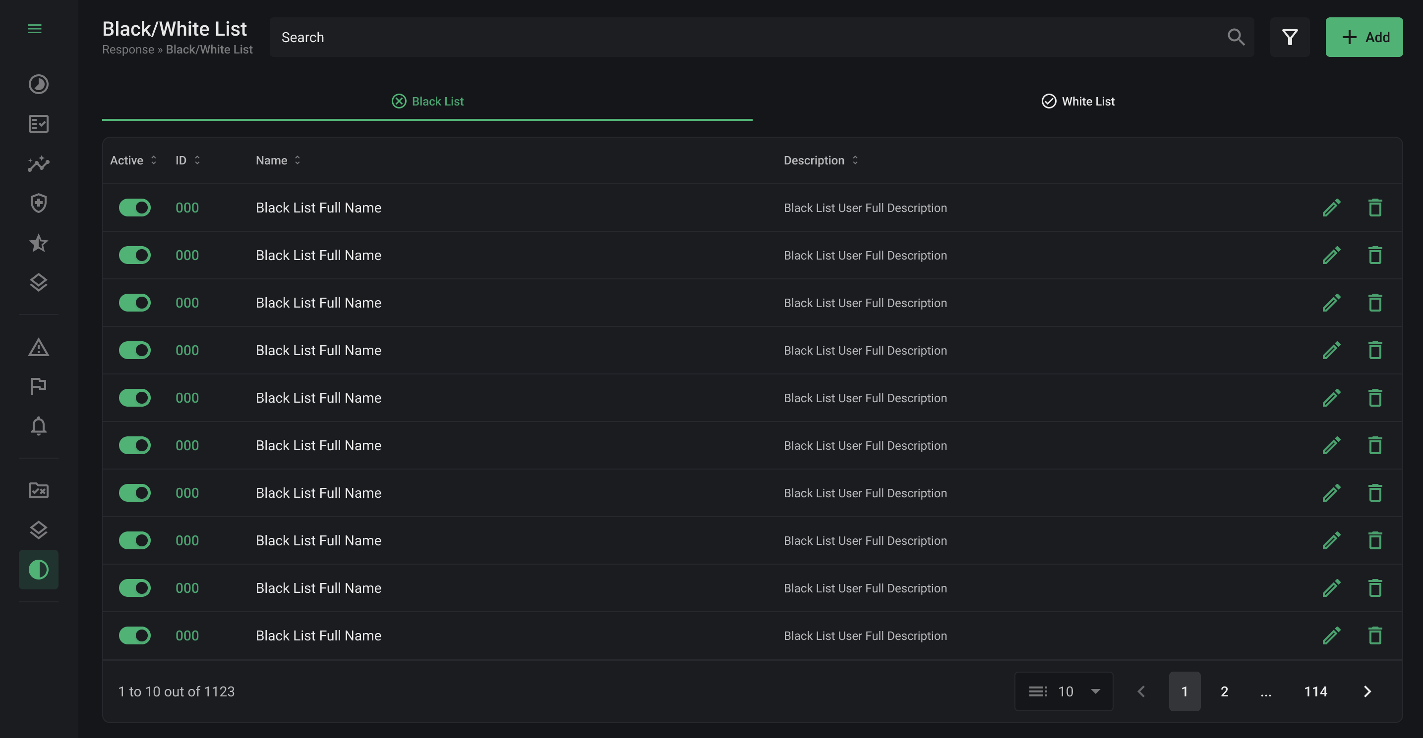 Knowledge Lists are essential for <mark style="color:green;">enhancing the processing of the alert engine, aiming to reduce false positives in an advanced and customized manner.</mark> In the user interface, it's possible to add, edit, filter, delete, and activate conditions as needed.&#x20;