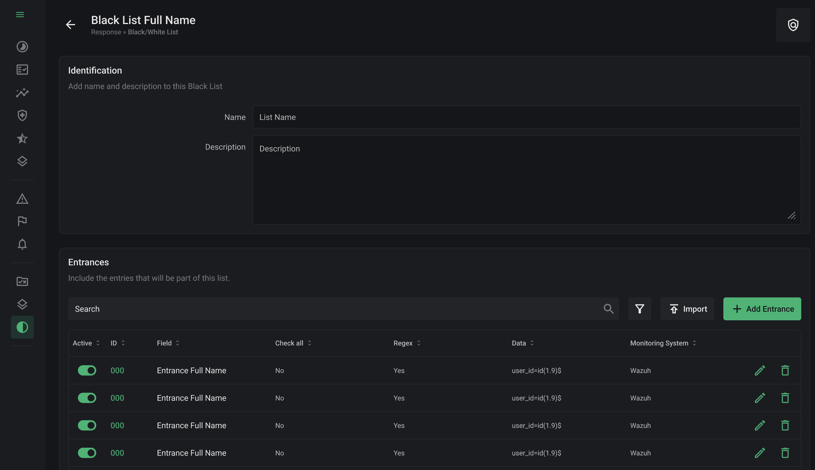 Both lists follow same creation process, with a form that includes <mark style="color:green;">a name, description, and a list of entries</mark>, which can be managed independently.&#x20;